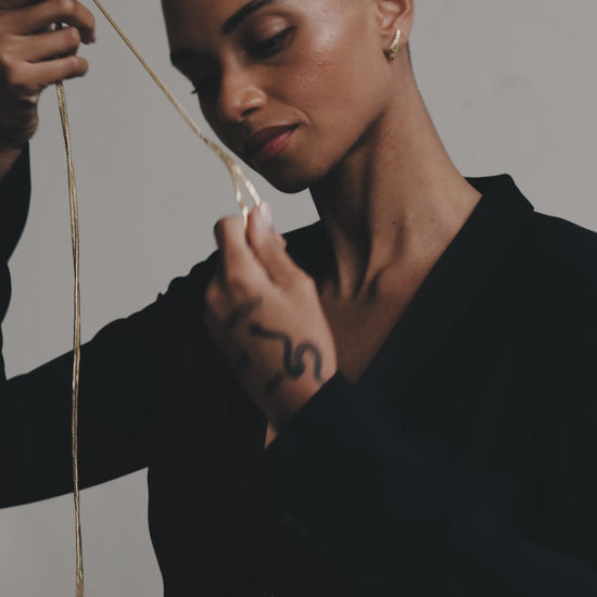 Lange halsketting met een op stropdas geïnspireerd ontwerp, vervaardigd uit verguld sterling zilver.